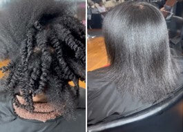 "This client was very please with her hair transformation using Kanuni Brown products. Her hair was nurtured back to a healthy state. "